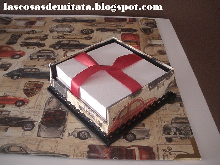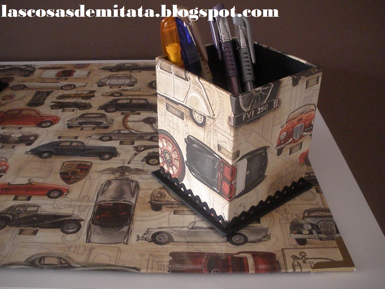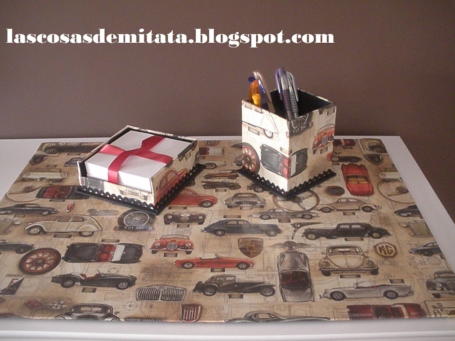 Aquí os dejo un Conjunto de Escritorio formado por un vadés, lapicero y porta notas. Es un regalo que he hecho por el Cumpleaños de mi amigo Paco, pero sois varias la que me habéis preguntado por este conjunto para regalarlo en Comuniones y creo que es super original para cualquier ocasión.