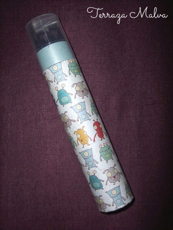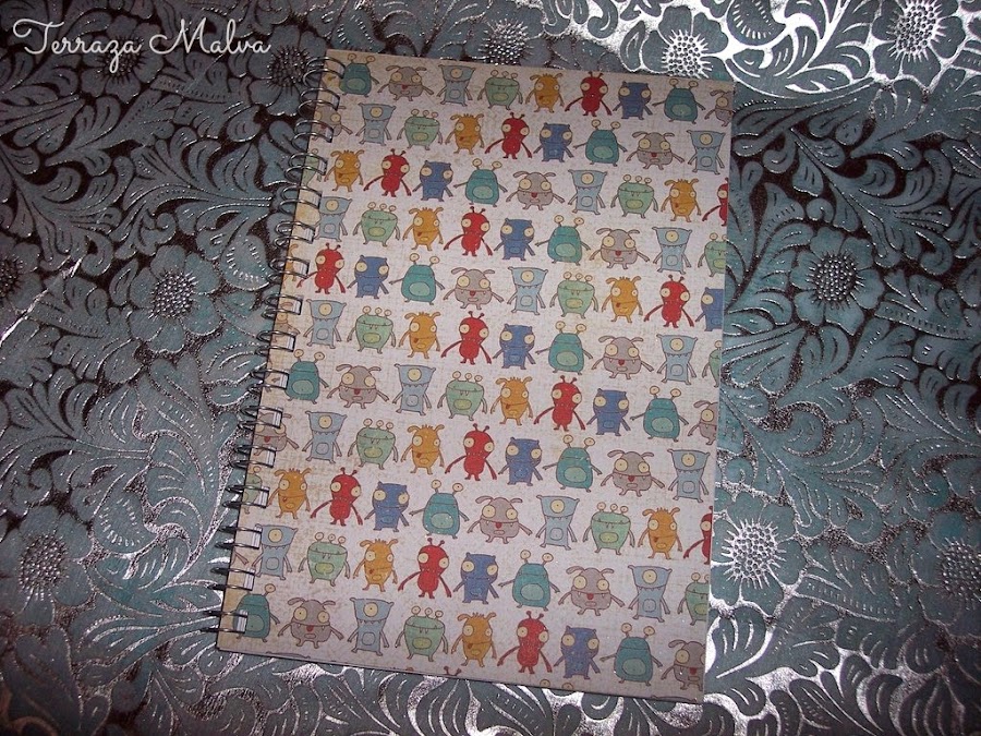 Utilicé una cartulina de scrap con unos monstruitos adorables. Me gusta mucho este papel tanto para niños como para adultos.