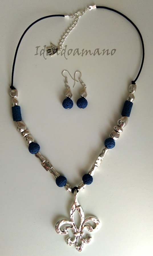 Hoy vuelvo a venir sin ser viernes pero es que se me acumula el trabajo... Este mes de Octubre está siendo muy ocupado y entre unas cosas y otras no me caben los post en el calendario... Este viernes os hablaré de lo que he visto en la feria de Creativa Madrid y el miércoles vendré con otra sorpresa, pero hoy me toca enseñaros un conjunto de pendientes y collar que tienen como motivo central la flor de Lys.