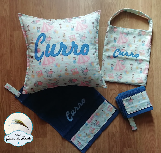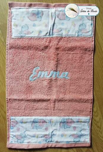 Y para la prima de Curro, una toalla también, para que se lave sus manitas y se las seque en su propia toalla. Dumbo también para ella, pero de estampado diferente.