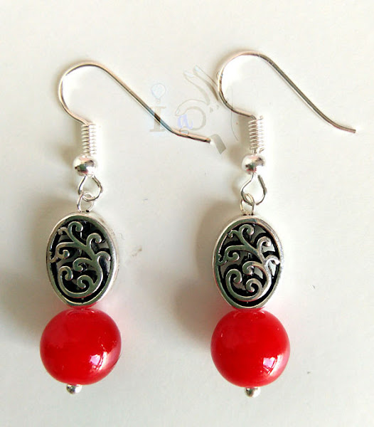 Y con la otra pieza y la piedrecita roja hago el otro modelo de pendientes: