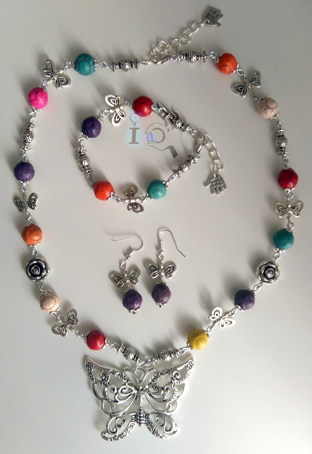 Aunque parece que ha vuelto el frescor ya estamos en plena primavera, así que os traigo hoy un conjunto de mariposas de lo más primaveral, compuesto por pendientes, collar y pulsera.