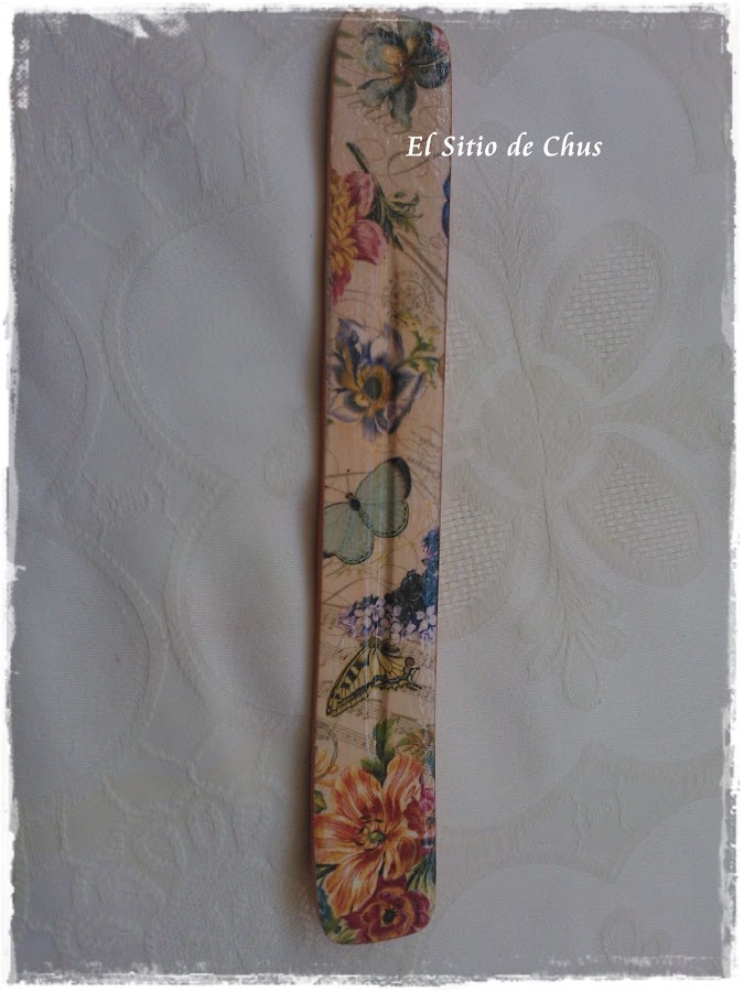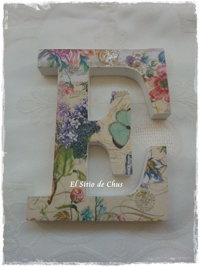 Hoy os enseño un conjunto en decoupage que le hice a mi amiga Esther por su cumpleaños, percha, inicial y tablita de inciensos a juego.