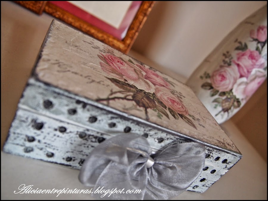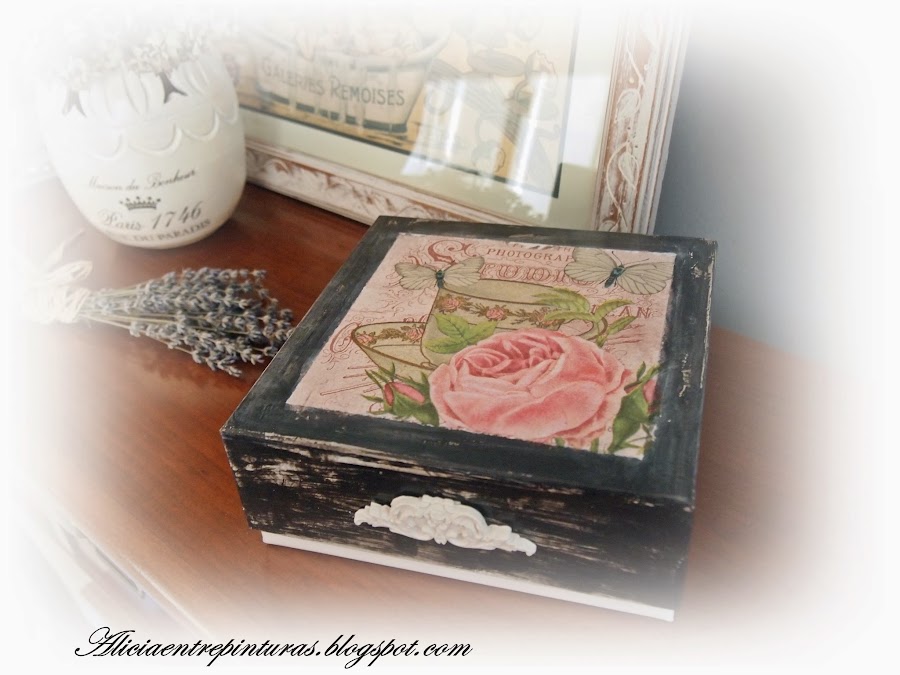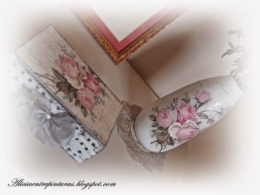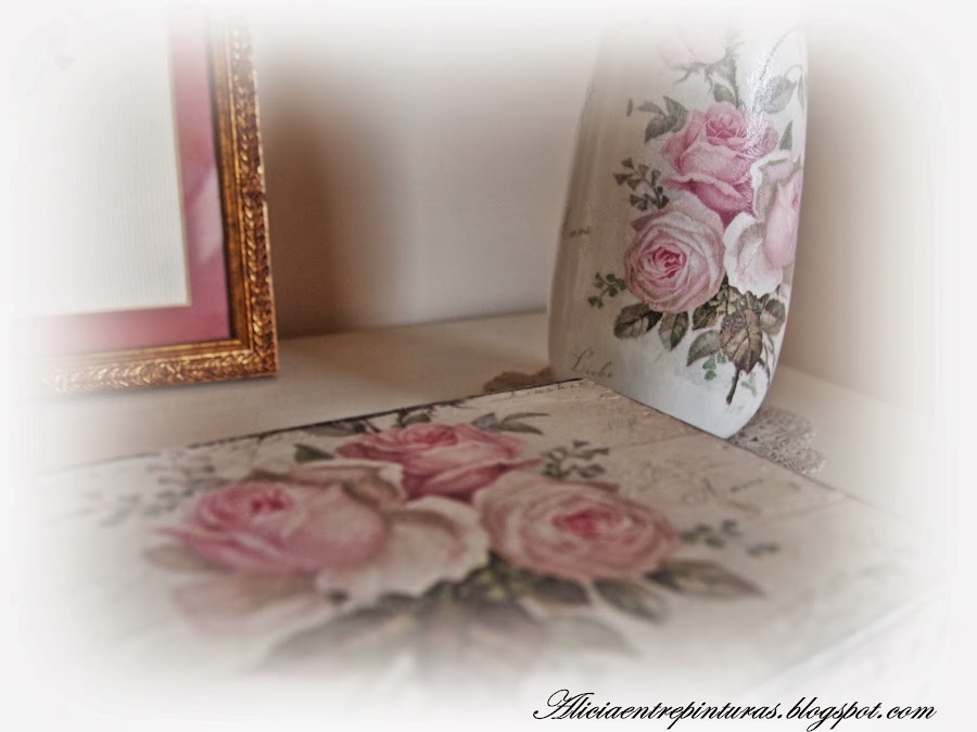 Como veis, la decoración es decoupage con esta servilleta de flores que a mi me parece preciosa.