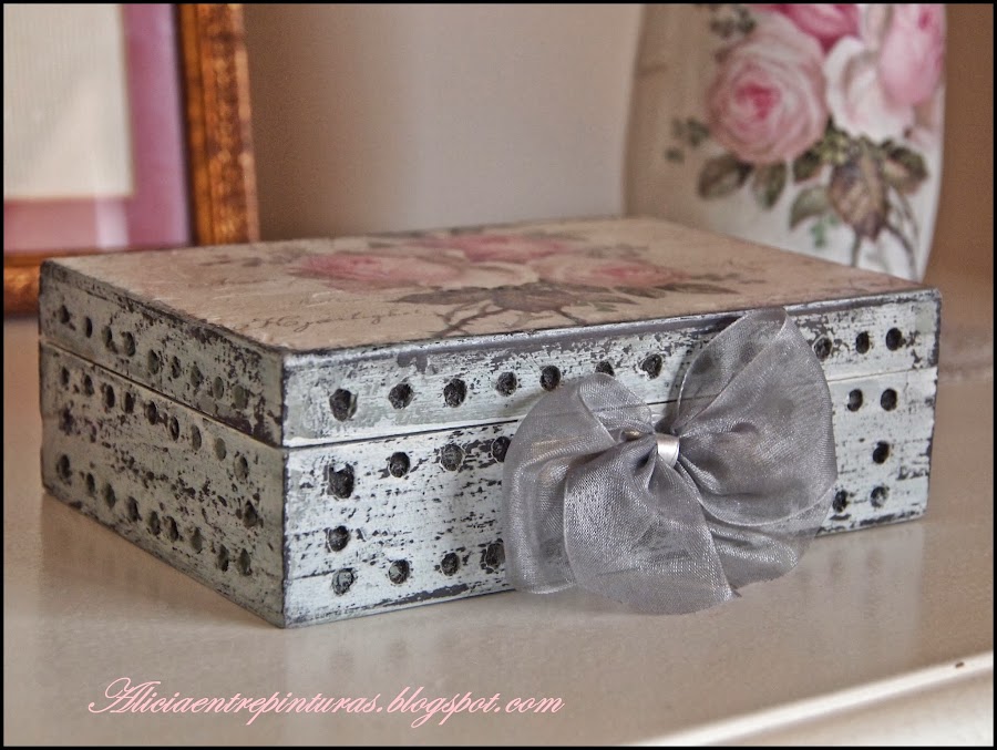 Como la caja estaba un poco "perjudicada" le apliqué aguaplast, un poco de cualquier manera, para que quedara más viejita.