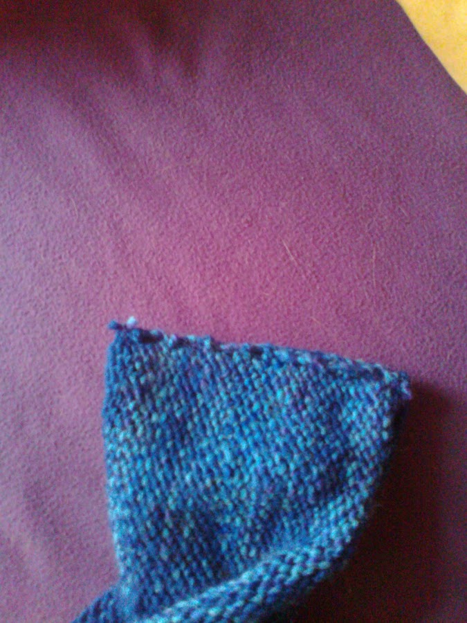 Después pasé a punto jersey (vueltas impares tejidas al derecho y pares al revés) tooodo recto hasta tener 21 cm. Entonces empecé con las disminuciones todas ellas en las hileras del derecho (no hacer las disminuciones en las hileras del revés):