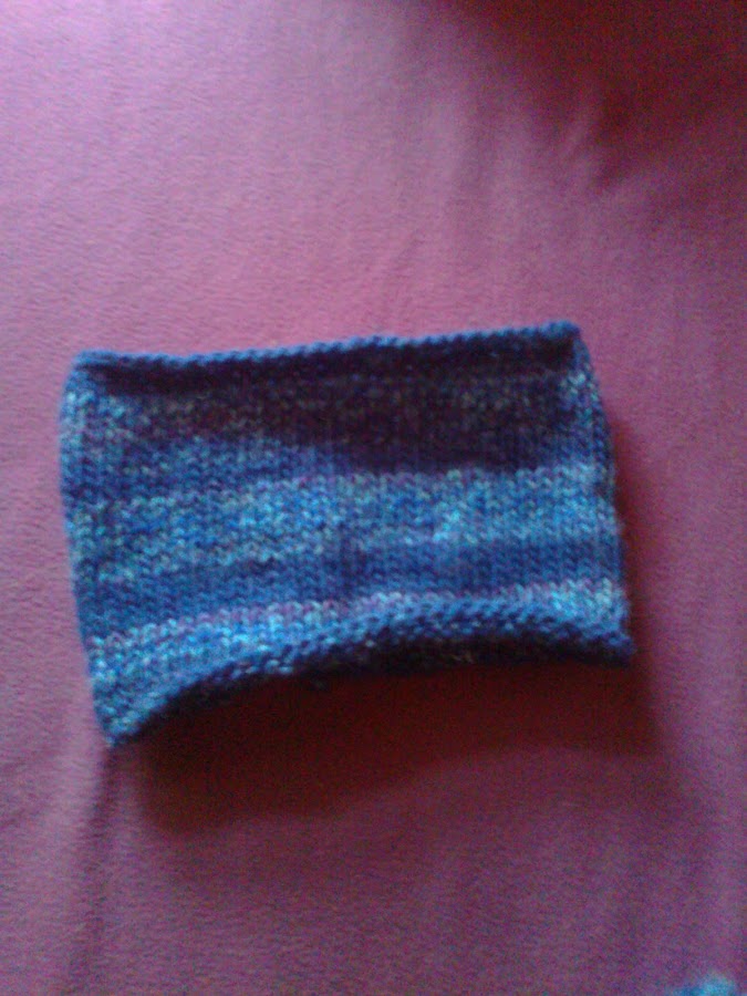Monté 65 puntos y trabajé a punto jersey hasta terminar el ovillo (18 cm). Hice una costura latera por la parte del revés y hecho!
