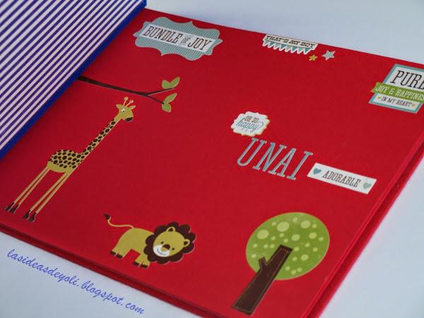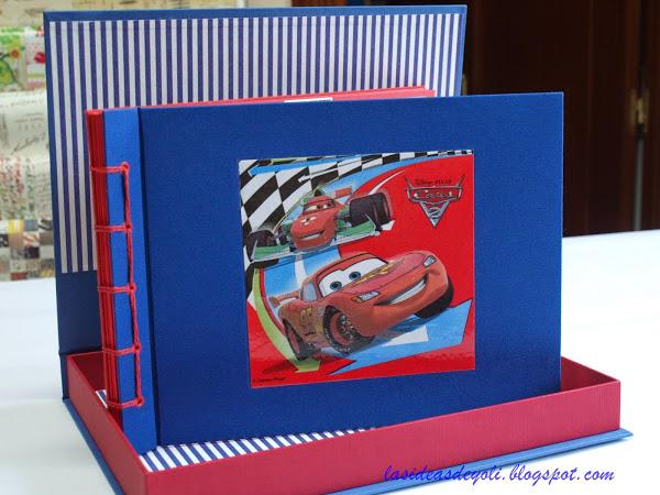 Hoy os enseño el conjunto de caja y álbum con cosido japonés sencillo que le hice a mi nieto para su cumpleaños.