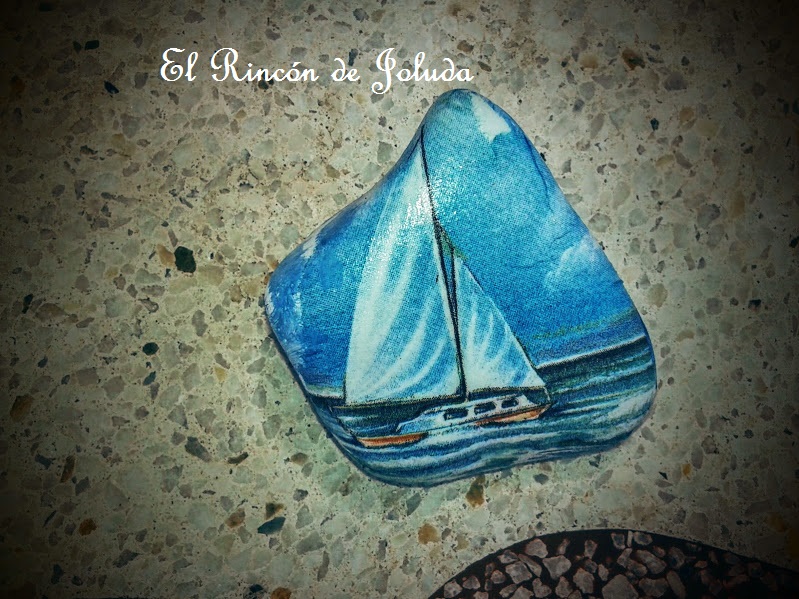 También he querido hacerle un pisapapeles con servilletas, con el motivo de un velero