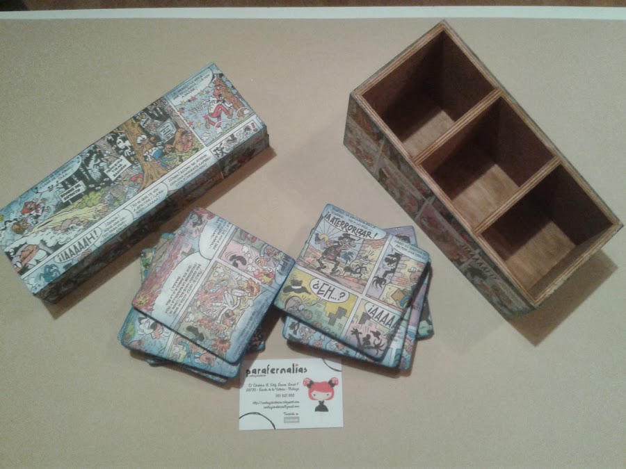 Para los más nostálgicos, os traigo un conjunto de escritorio y posavasos de Mortadelo y Filemón. ¡Cuánto nos hemos reido con los disfraces de Mortadelo y sus historias!