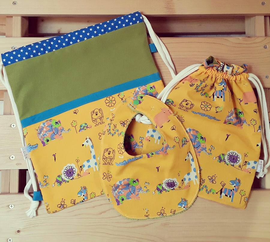 Este está formado por mochila,bolsita desayuno y babero a juego.