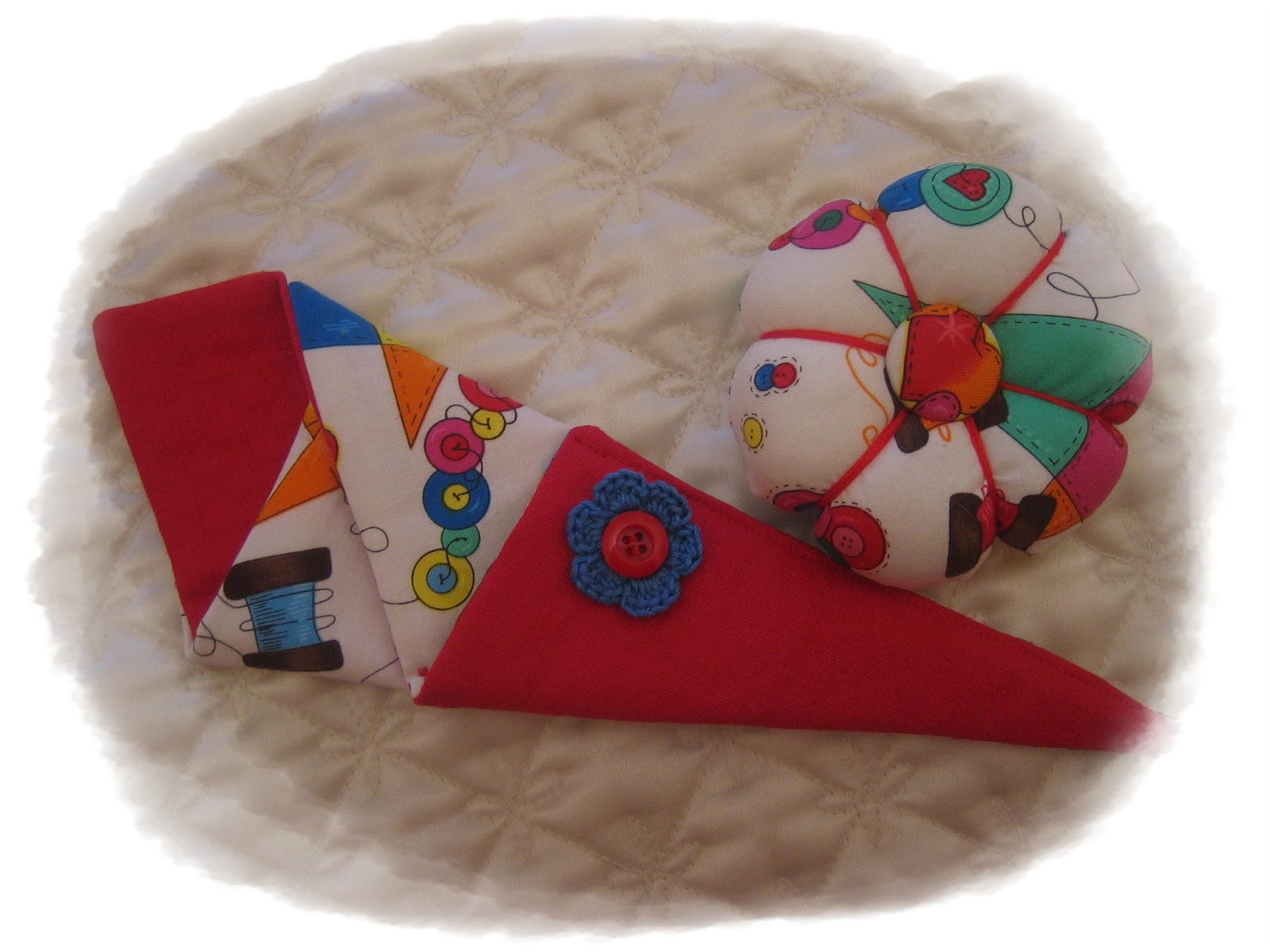 Este conjuntico de costura formado por guardatijeras y acerico ya esta en poder de su destinataria.