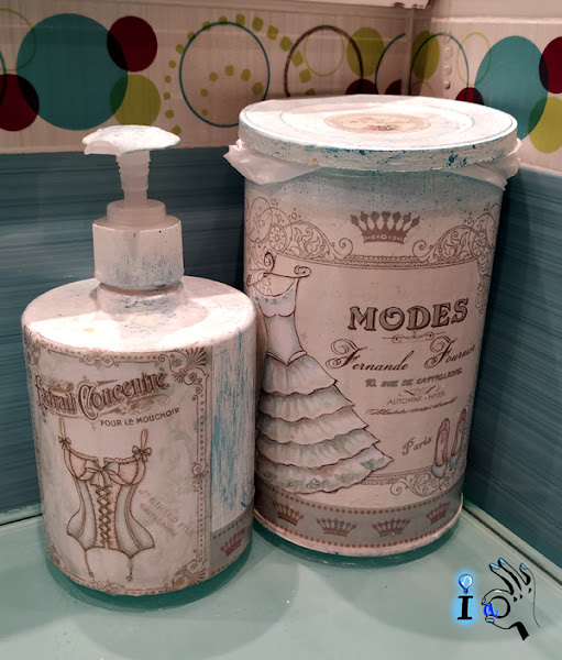 Y de esta forma tan sencilla podemos personalizar nuestros accesorios de baño, porque también se puede hacer un bote para los cepillos y la pasta de dientes o todo lo que se os ocurra...