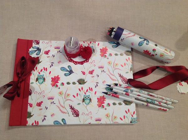 Libro recuerdo de Comunión y caja con lápices forrados