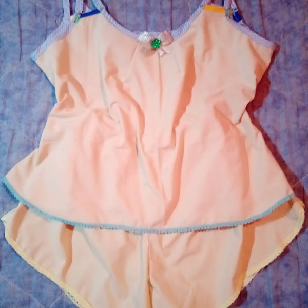 Pensé, que hago con todo esto y entonces dije hacer un top y unos shorts no debe ser tan complicado, tome uno de los míos y saque el patrón para hacer un conjunto pijama con short.