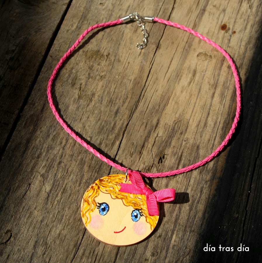 Pero como además de estar invitado Abel, al cumple también invitaron a Iván, quise completar el regalo con algo más, para que cada uno pudiera darle su propio regalo. Así que decidí hacerle un colgante con cara personalizada, siguiendo el estilo de la camiseta, y un coletero para completar el conjunto.