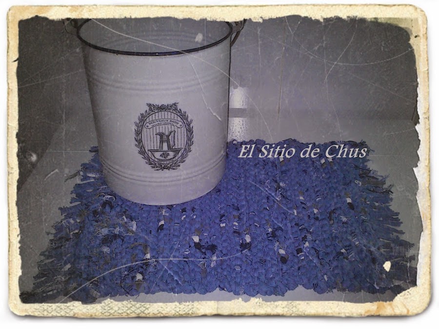 Vamos por partes, recordáis aquella jarra de porcelana que decoré con transfer para mi amiga Carmen??? Pues esa jarra tenía un cubo compañero. El pasado día 30, fuimos a casa de Carmen para celebrar su cumpleaños, y allí que fuimos con el cubo restaurado y decorado, acompañado también de una alfombra de trapillo para completar el conjunto. Qué os parece?