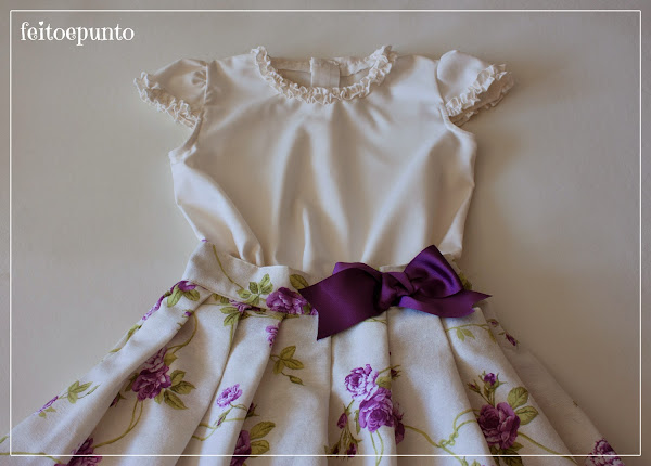 Y a juego una blusita lisa, adornada con unos pequeños volantes fruncidos en cuello y mangas, hechos en la misma tela.