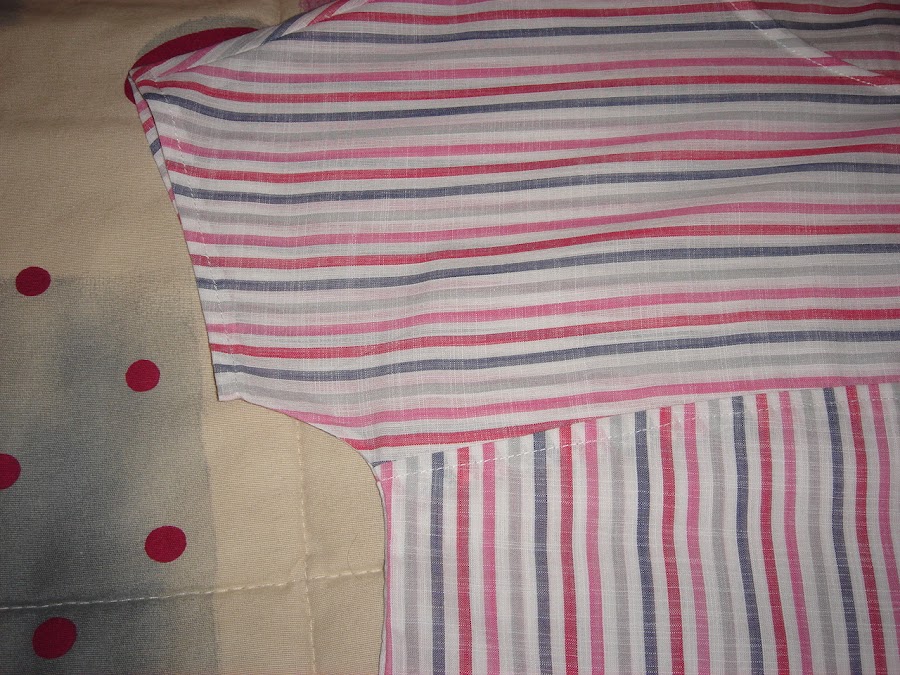 Al principio pense en hacer la blusa con las rayas en la misma direccion , pero a la hora de cortar la blusa pense en hacer una parte vertical y otra parte en horizontal .