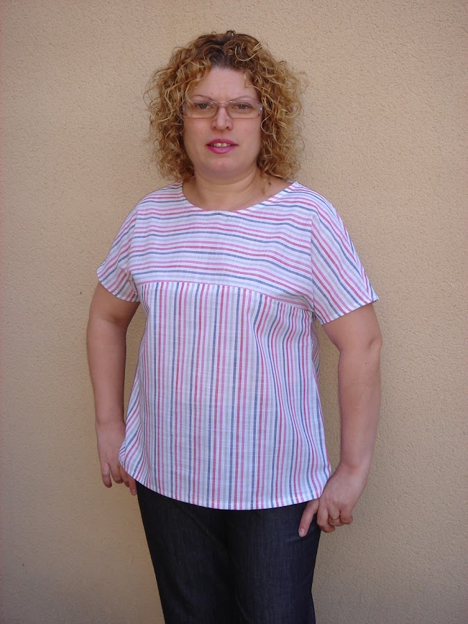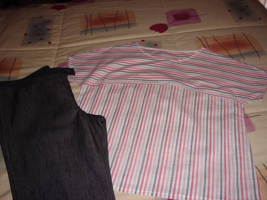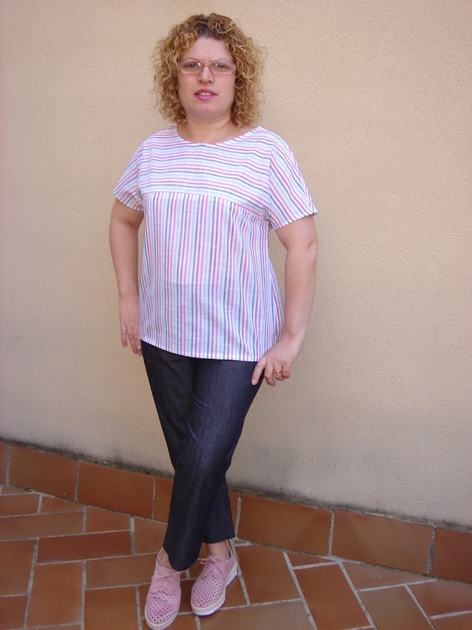 El pantalon es de largo tobillero asi es mas fresquito y la blusa he variado el patron para poder combinar las rayas.