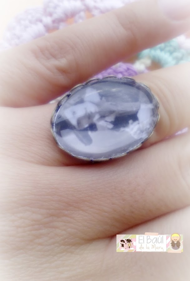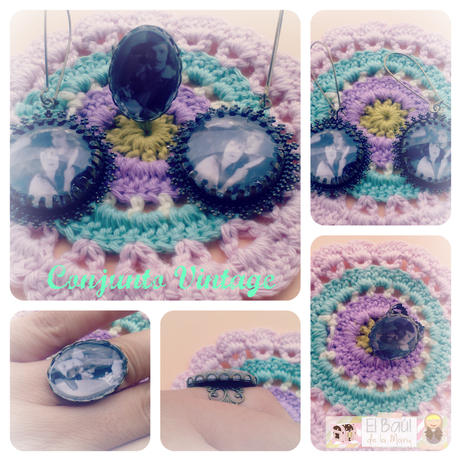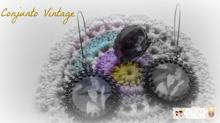 Pero entonces nos escribió Sofía para consultarnos si podríamos hacer un anillo y unos pendientes a juego con una imagen que ella nos enviaba. Y no lo dudamos. Unos cuantos emails, y salió este conjunto tan vintage, tan hollywoodiense... tan, tan... poned vosotras el adjetivo que más os guste.