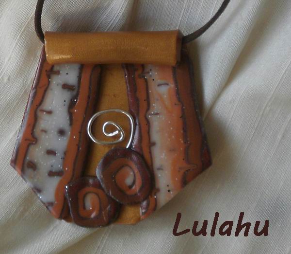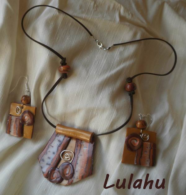 Collar de arcilla polimérica con diferentes texturas y acabados y alambre grueso. Para Inés con todo mi cariño