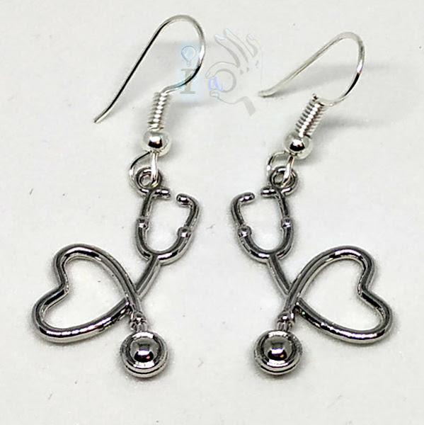 Este primer conjunto es de inspiración médica. ¿y dónde están los corazones? os preguntareis... pues lo primero es que el collar representa un latido de corazón (es la onda eléctrica de un latido), y lo segundo que los pendientes son fonendoscopios que sirven para oír estos latidos, y además forman un corazón. Os los pongo por separado para que los veáis mejor...