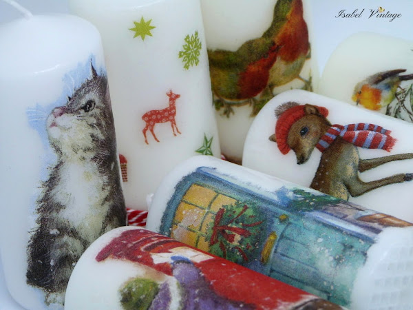 Estas velas decoradas con decoupage pueden utilizarse sin miedo a que se queme el papel. Como toda vela encendida, no se debe dejar desatendida, pero lo que se irá fundiendo será la vela desde dentro y con ella el papel; éste nunca entrará en contacto directo con la llama.