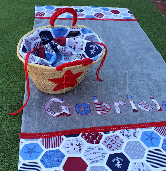 En esta ocasión Luisa me planteó un reto, ya que me pidió algo que no había hecho nunca hasta ahora: quiso que le hiciera una toalla personalizada con capazo a juego, para que las niñas que celebraban su Primera Comunión fuesen bien conjuntadas este verano a la playa y la piscina.