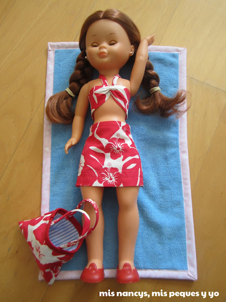 Y ya puestos a hacer todo el conjunto playero para las Nancys? ¿Cómo van a irse a la playa sin una toalla? Jejejeje... Así que ni corta ni perezosa les hice su toalla? ¡¡pero esto también os lo cuento en otro mini-tutorial!! Si no me va a quedar otro post larguísimo?. ¡Cómo siempre! Jejejeje?
