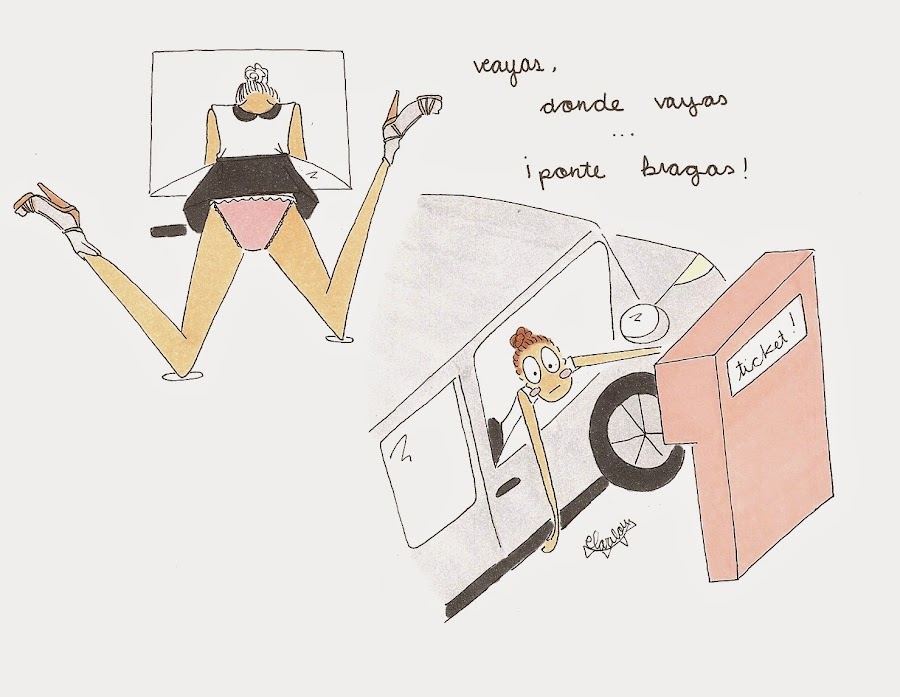 Trato de dibujar a gente como tú y como yo. A esa a la que le importa un pimiento las mil y una poses de una blogger, que se levanta los lunes con la legaña más pegada que el super glue, que se da homenajes con chocolate cuando está de bajón, la que pone la habitación patas arriba un sábado por la noche "porque no tiene nada que ponerse" o la que atasca el "molde" de Ryanair con su equipaje de mano.