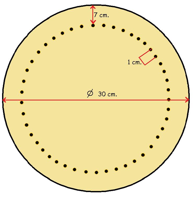 Trazamos a contiuación un círculo que 7 cm. más pequeño que el anterior y sobre esa línea colocamos los clavos, que separaremos 1 cm. entre sí.