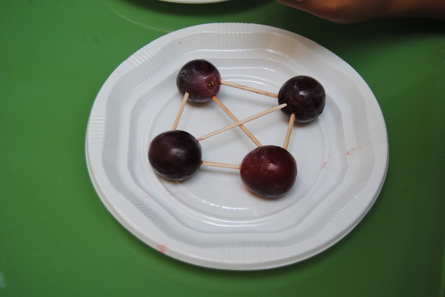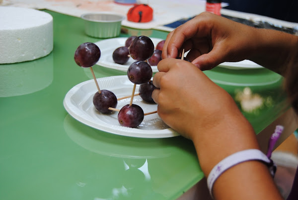 Los niños deben realizar construcciones de fruta, como puedes observar en las fotos que te dejo. Lo pasan bien un rato, y se entretienen de una manera sana y divertida. Pero...¡no esperes que tarden en comérselo!!