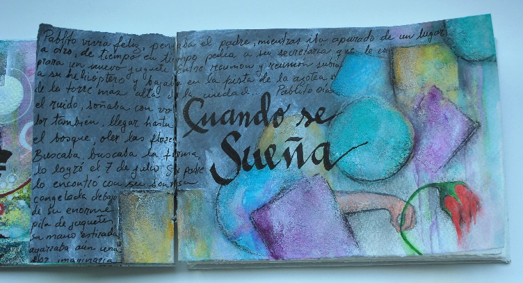La idea no es ilustrar mis relatos, es hacer páginas mixed-media basándome en ellos...