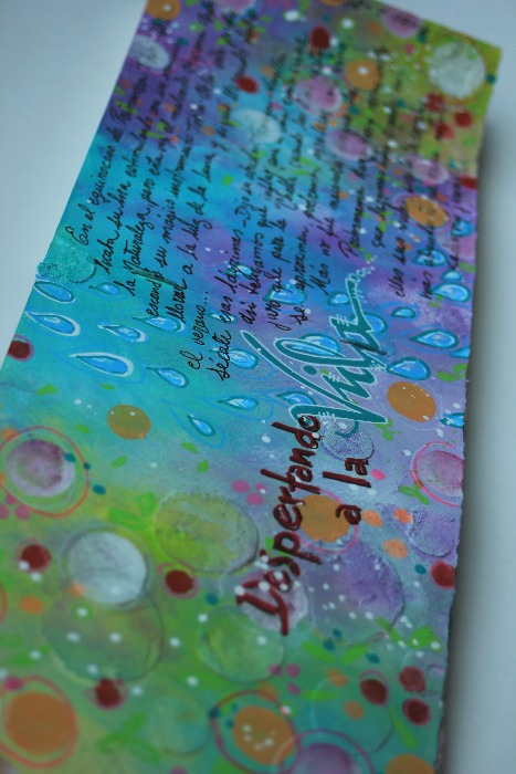 Esta vez he quedado feliz con mi página, muy llena de vida y movimiento, con texturas aunque sólo un poco, apenas las necesarias como para que den ganas de pasar la mano por la página...