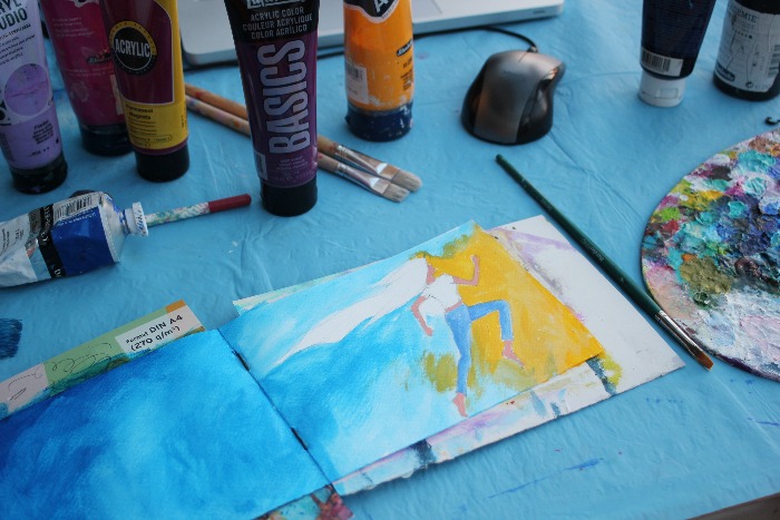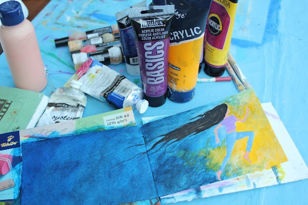 después ya es coser y cantar... digo: pintar y pintar! quería hacerla tipo acuarela pero como quiero que el libro siga con el mismo hilo, ni modo: acrílicos!. Y ya lo sabes, es una capa, dejar secar, y la otra capa, secar, y la otra...