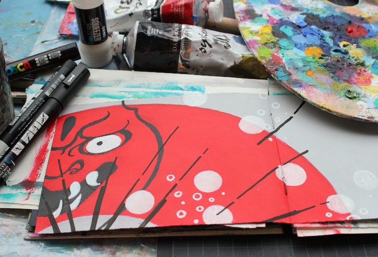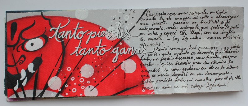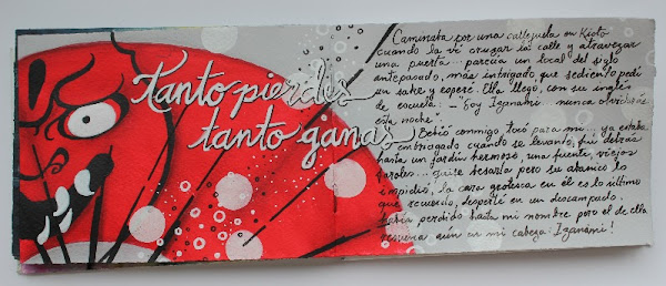 Bebió conmigo, tocó para mi...ya estaba embriagado cuando se levantó, fuí detrás, hasta un jardín hermoso, una fuente, viejos faroles... quise besarla pero su abanico lo impidió, la cara grotesca en él es lo último que recuerdo, desperté en un descampado, había perdido hasta mi nombre pero el de ella resuena aún en mi cabeza: Izanami!