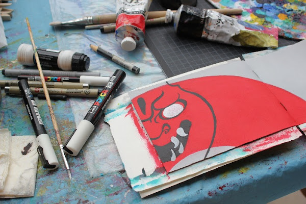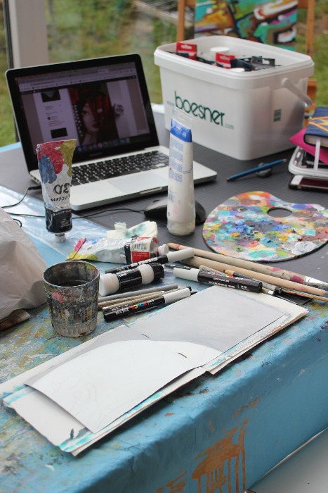 Siempre es igual, primero los fondos y poco a poco la imágen. Ya sabes que una de las cualidades del acrílico es su transparencia y aunque se puede tener opaco, semi o transparente, el opaco nunca es 100 % cubriente, así que varias capas es lo recomendable.