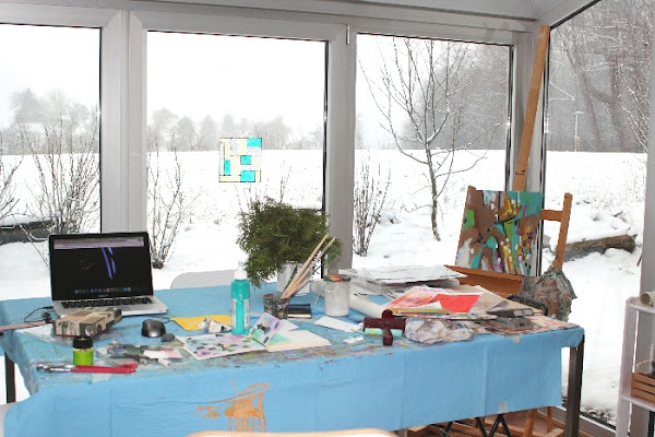 En un día inspirador! jajaja ya sabes, que llueva que llueva la virgen en su cueva... afuera muy nevado pero en mi taller muy calentita...