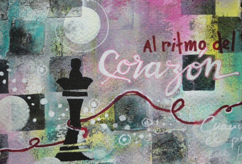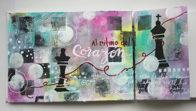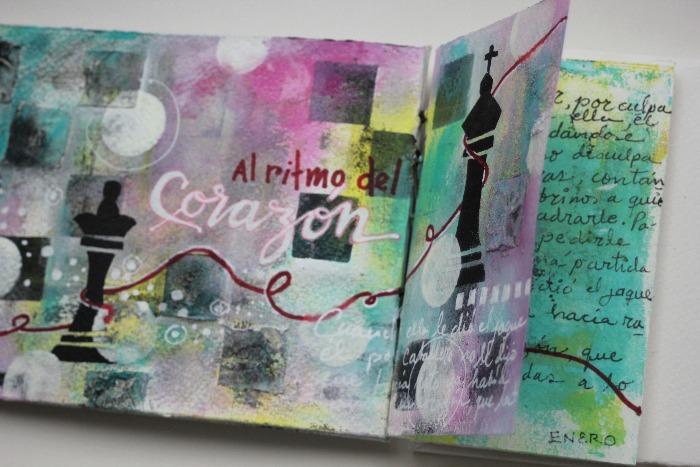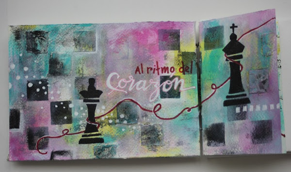 Tomé acrílicos para mi página mixed media, con pasta de relieve, rotuladores (marcadores), placa gelli, plantillas hechas por mi...