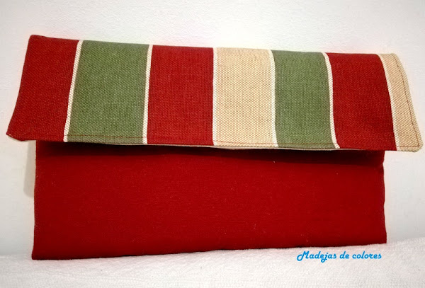 Sobre base granate, solapa en mismo tono con listas verde seco y crudo.