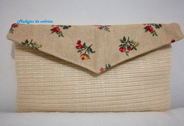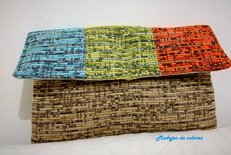 Debajo una beige con hebras negras y en la solapa 3 colores alegres y diferentes unidos, de la misma colección.