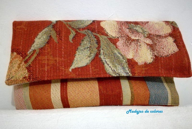 Y por último, con fondo teja, una gran flor, sobre una de listas en tonos variados y coordinados.