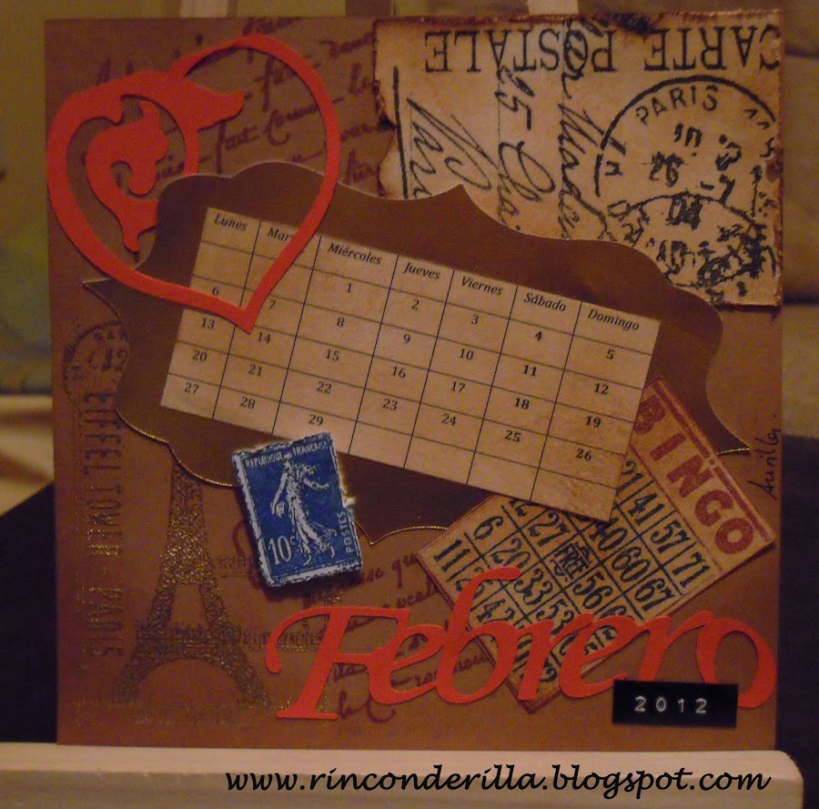 En cuanto al mes de febrero está hecho especialmente con los sellos de "Tim Holtz® French Market", además de uno de bingo que compré suelto y no sé la marca y el de texto de Aladine®.