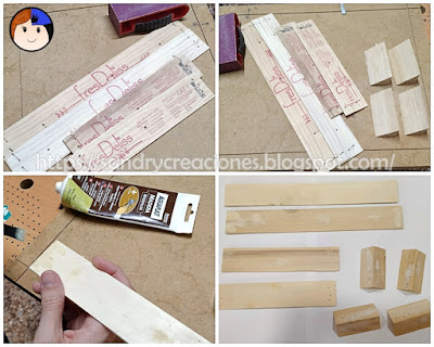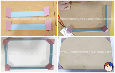 Paso 4. Montar la caja. Una vez tenemos las piezas decoradas procedemos a montar otra vez la caja pero pegándola esta vez con cola blanca. Primero empezaremos pegando los lados con las esquinas y después pegaremos la base.