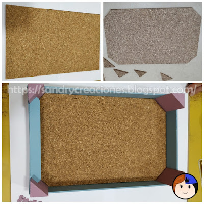 Paso 6. Otros detalles (opcional). Una vez terminada la base de nuestro panel para poner notas y/o fotos es momento de poner los detalles que queramos, decoraciones a base de letras de madera, hembrillas para poder colgar el panel a una pared, etc...