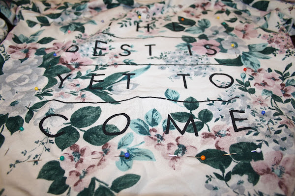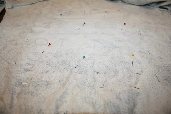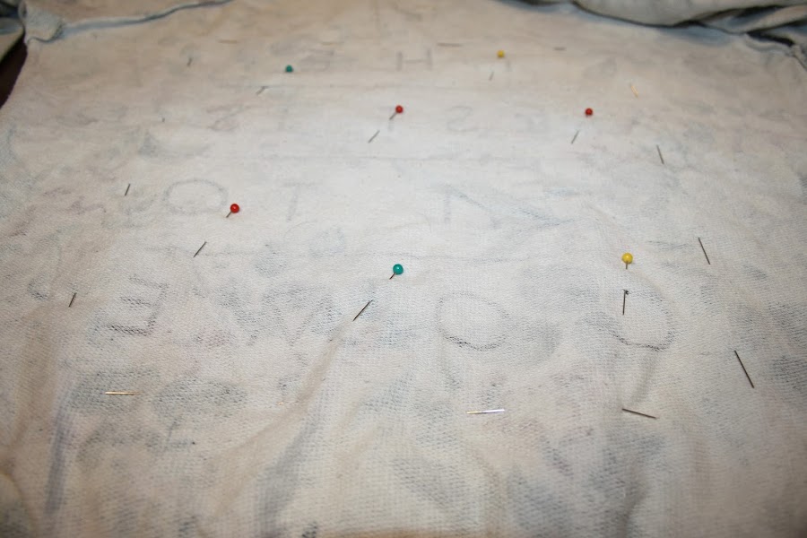 Yo quería conservar la frase completa que traía escrita la sudadera así que marqué alrededor. Acordaros que solo hay que coger la parte del delantero con alfileres.