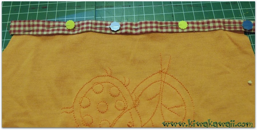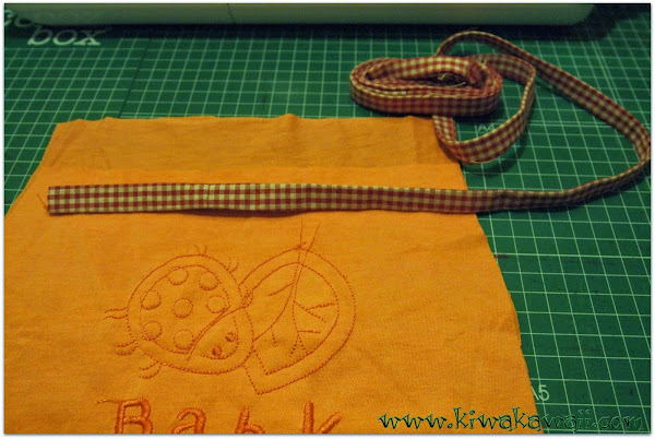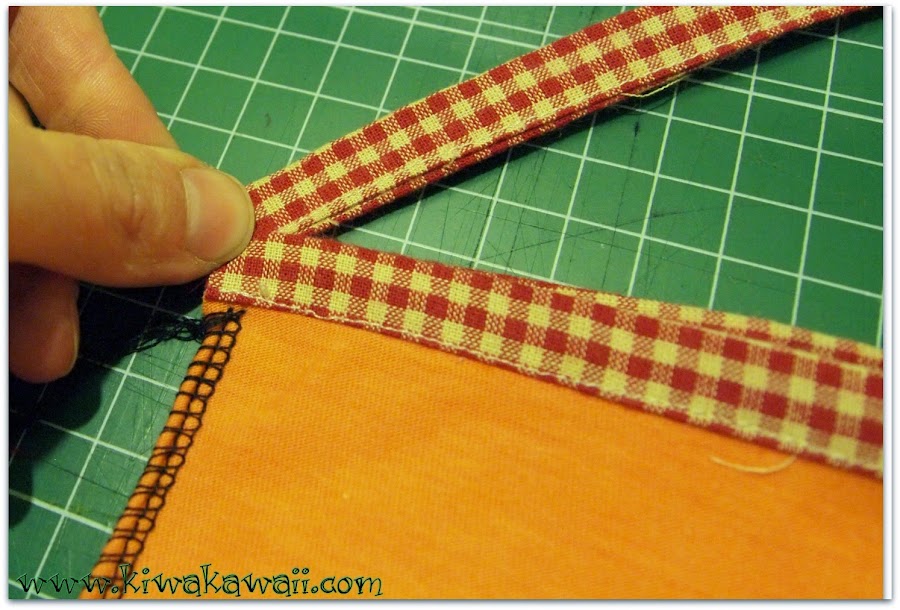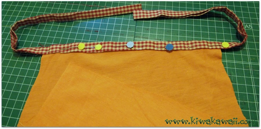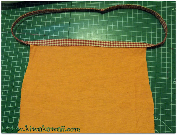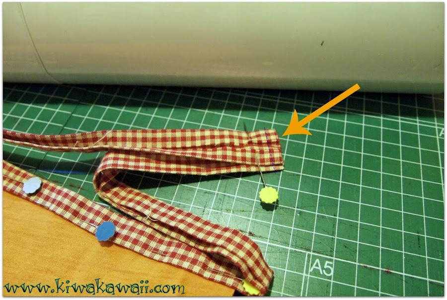 Preparamos una cinta al biés, que pondremos tanto en la tela delantera como en la trasera.