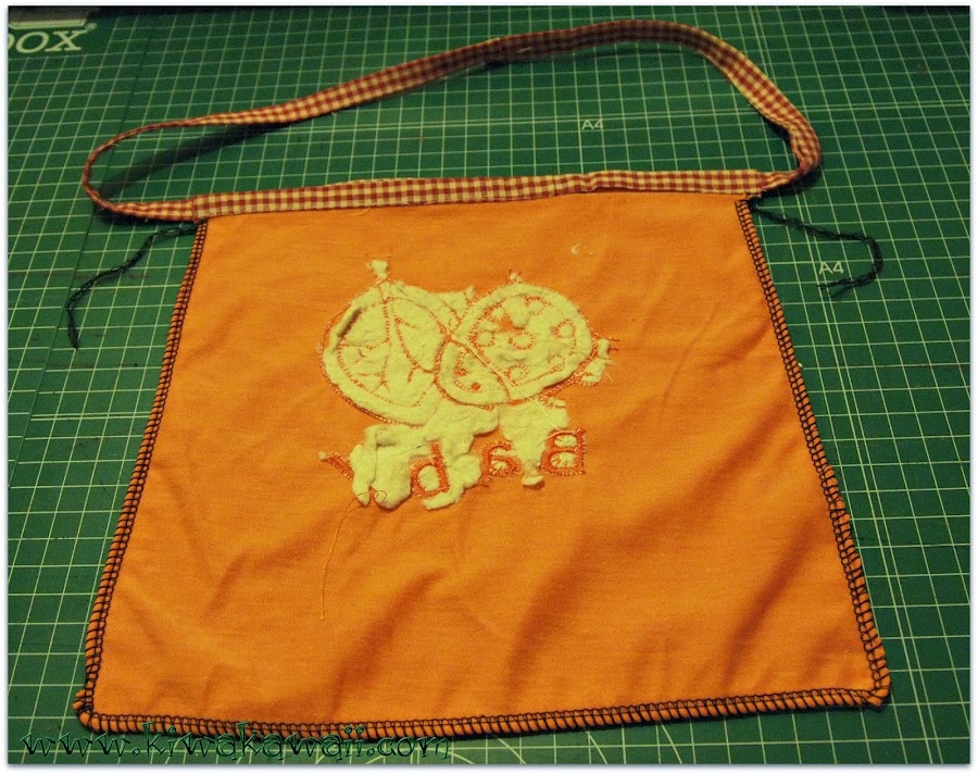 Y cosemos toda la cinta, nos quedará la parte trasera de la bolsita así:
