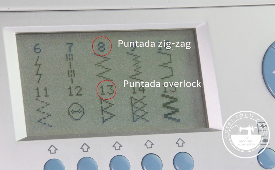 Con este prensatelas asegúrate de seleccionar una puntada zig-zag o, si la tienes en tu máquina, una puntada overlock. Este es el aspecto que tienen.